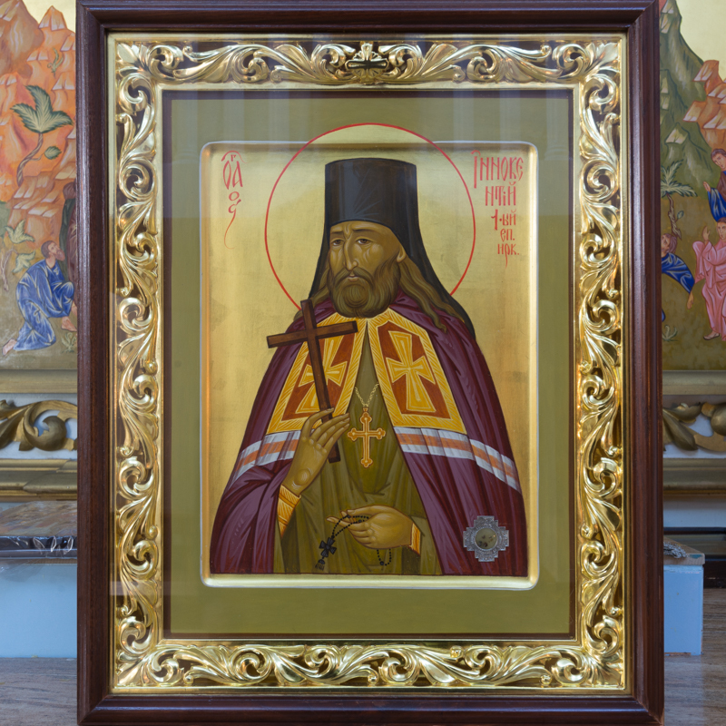 Икона с частицей мощей Святителя Иннокентия епископа Иркутского.