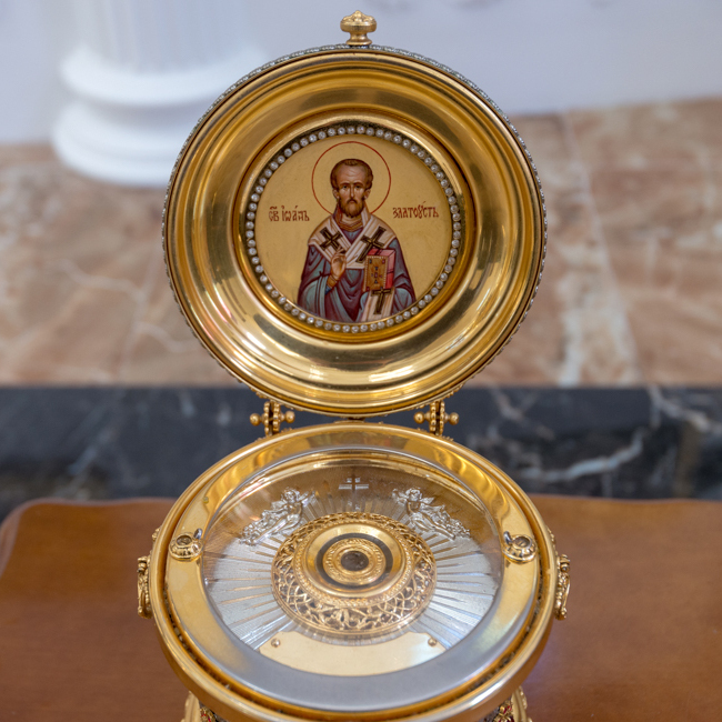 Ковчег с частицей мощей св. пророка и предтечи Иоанна Крестителя.